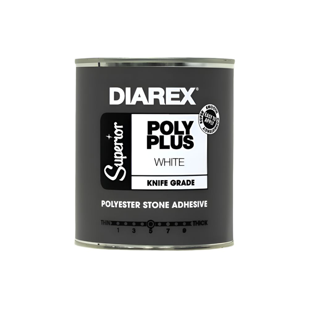 Diarex Superior PolyPlus combines the quality and trust of both Diarex and Superior into the ultimate polyester stone adhesive. With fast gel and cure times, Diarex Superior PolyPlus provides a quality mechanical bond that is ideal for mitring, laminating, seaming, rodding and chip repair.